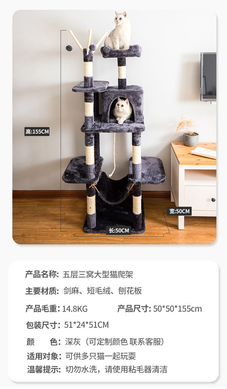 Multi-functional Dual-Cubicle Cat Tree (Medium Size)