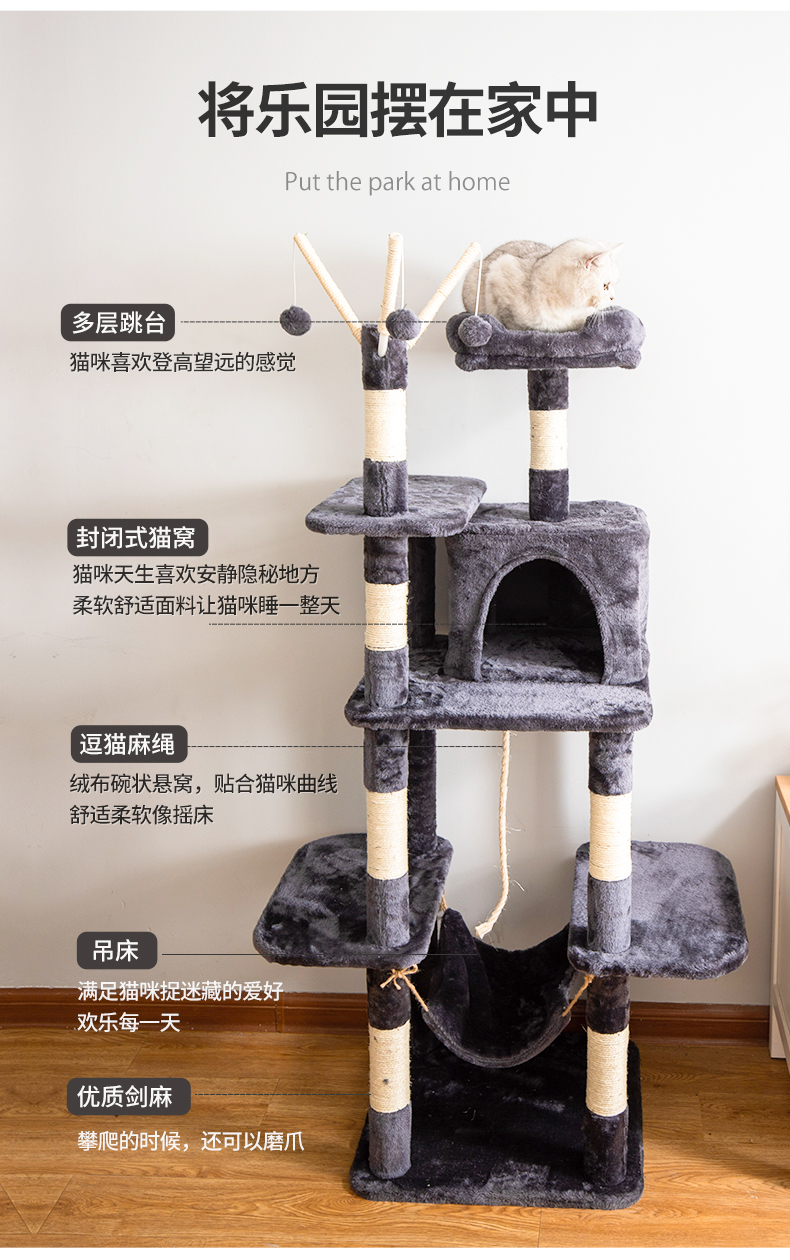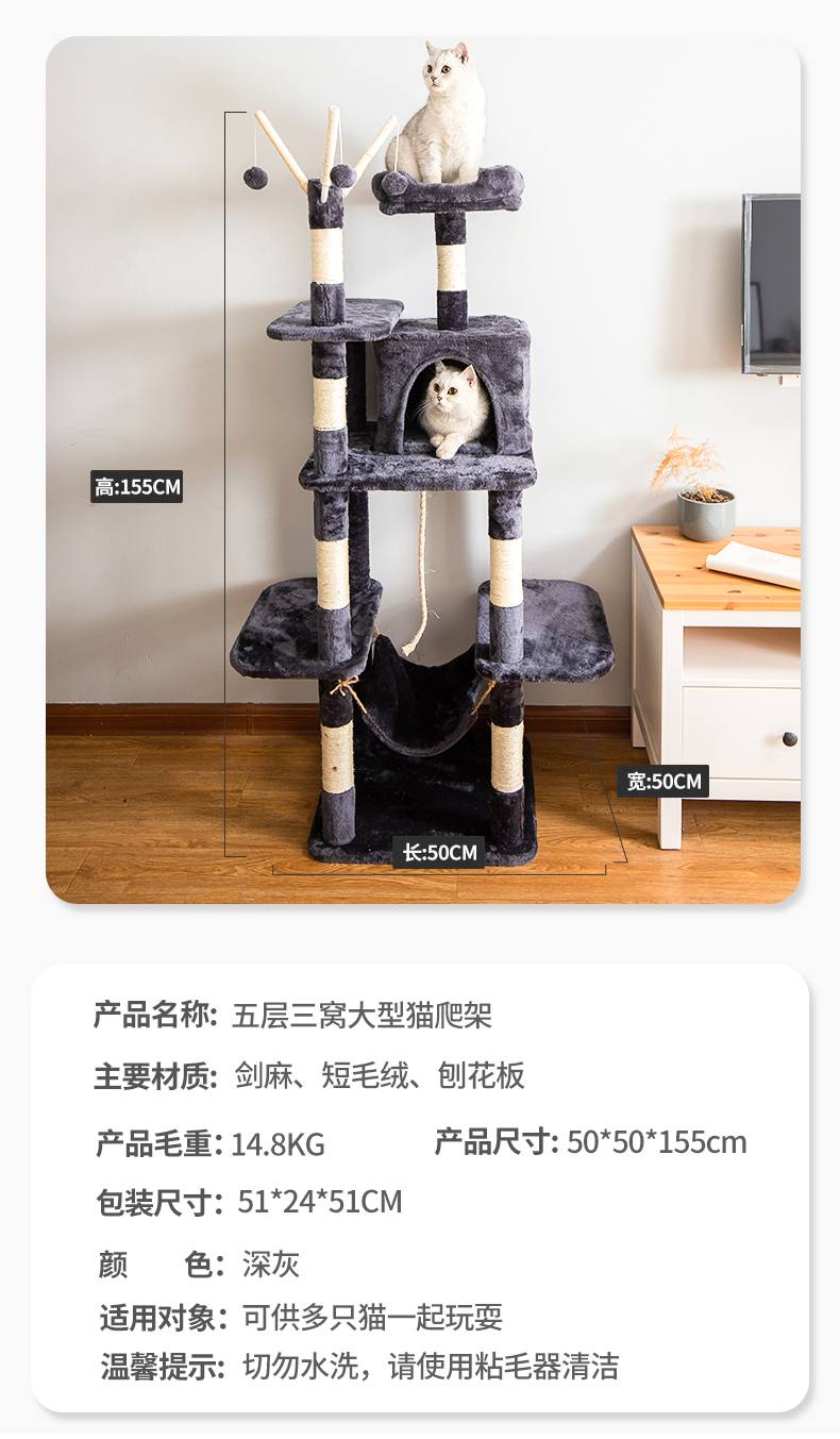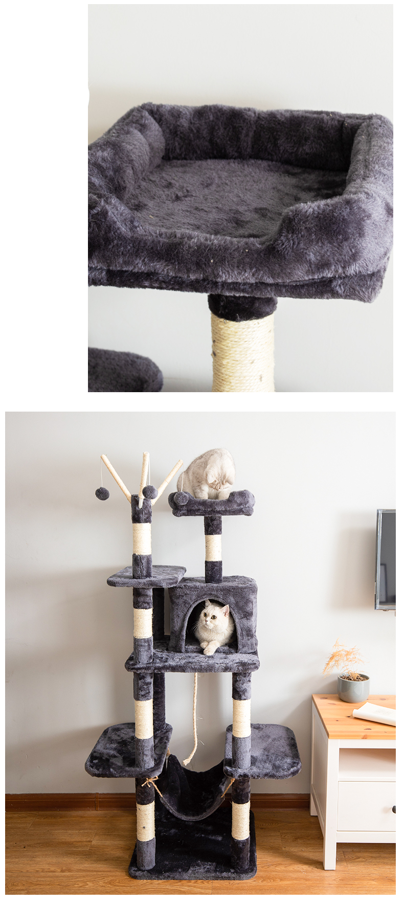 Multi-functional Dual-Cubicle Cat Tree (Medium Size)