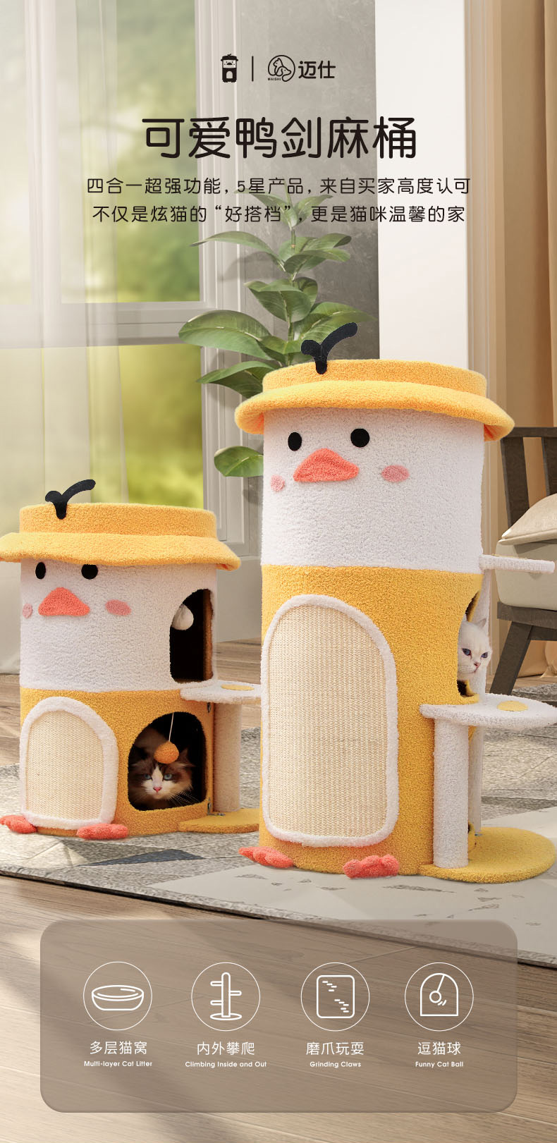 Adorable Duck Sisal Bucket Cat Tree