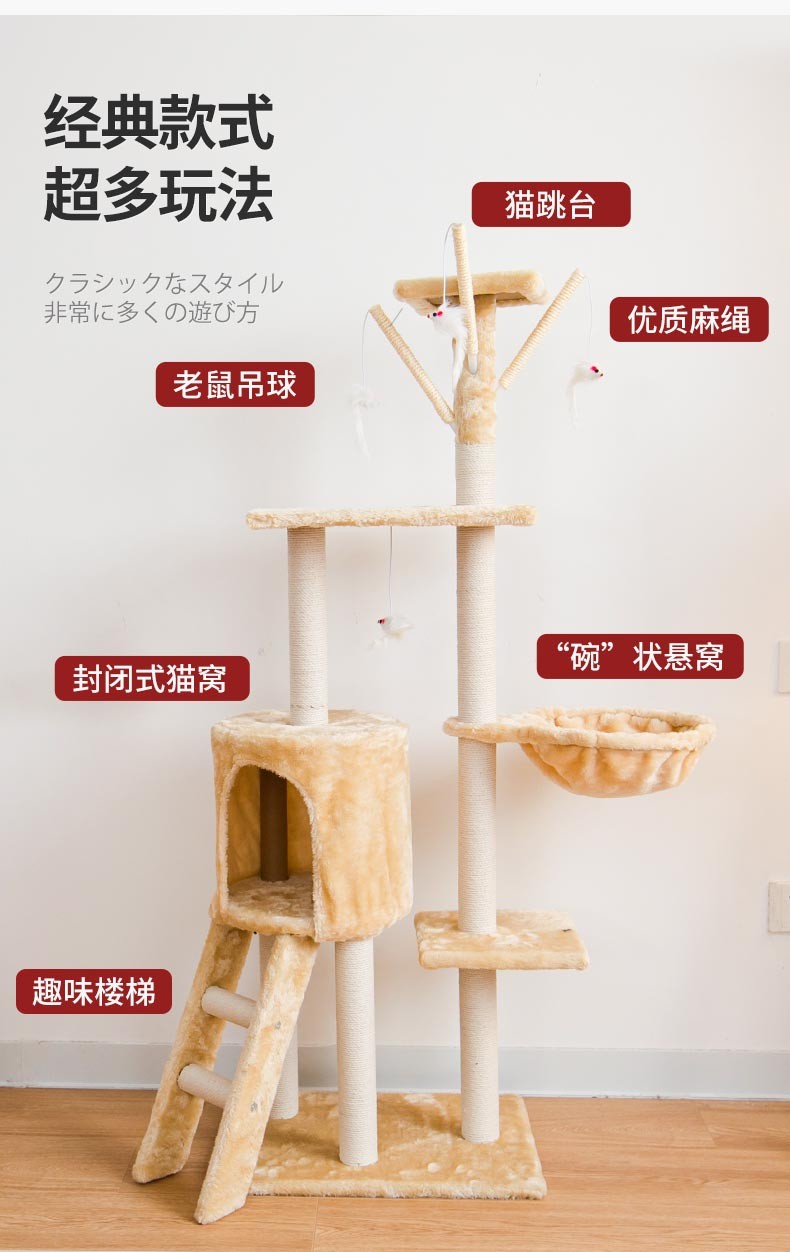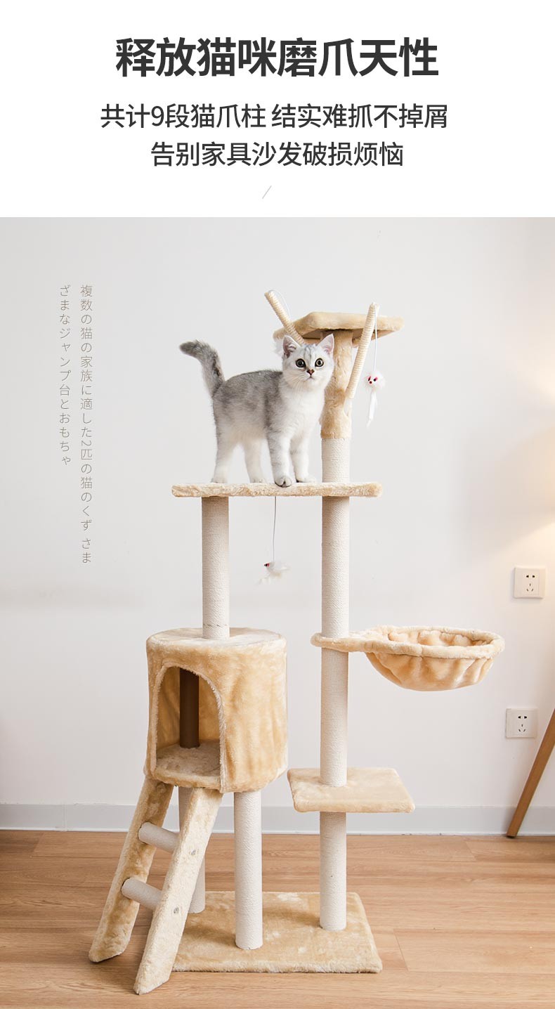 Multi-functional Dual-Cubicle Cat Tree (Medium Size)
