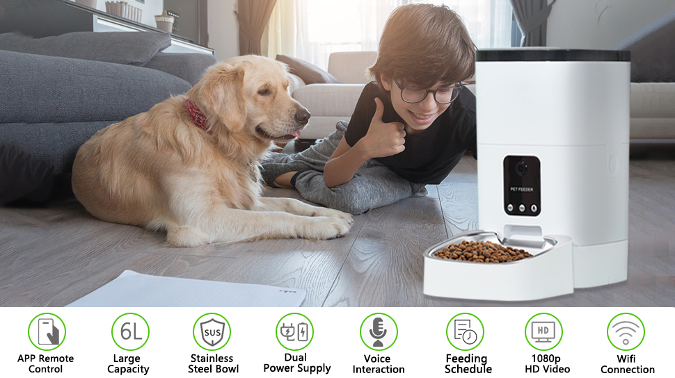 Mobile Phone Control Audio WiFi Smart Pet Feeder HD 1080P Camera 6L Video Automatic